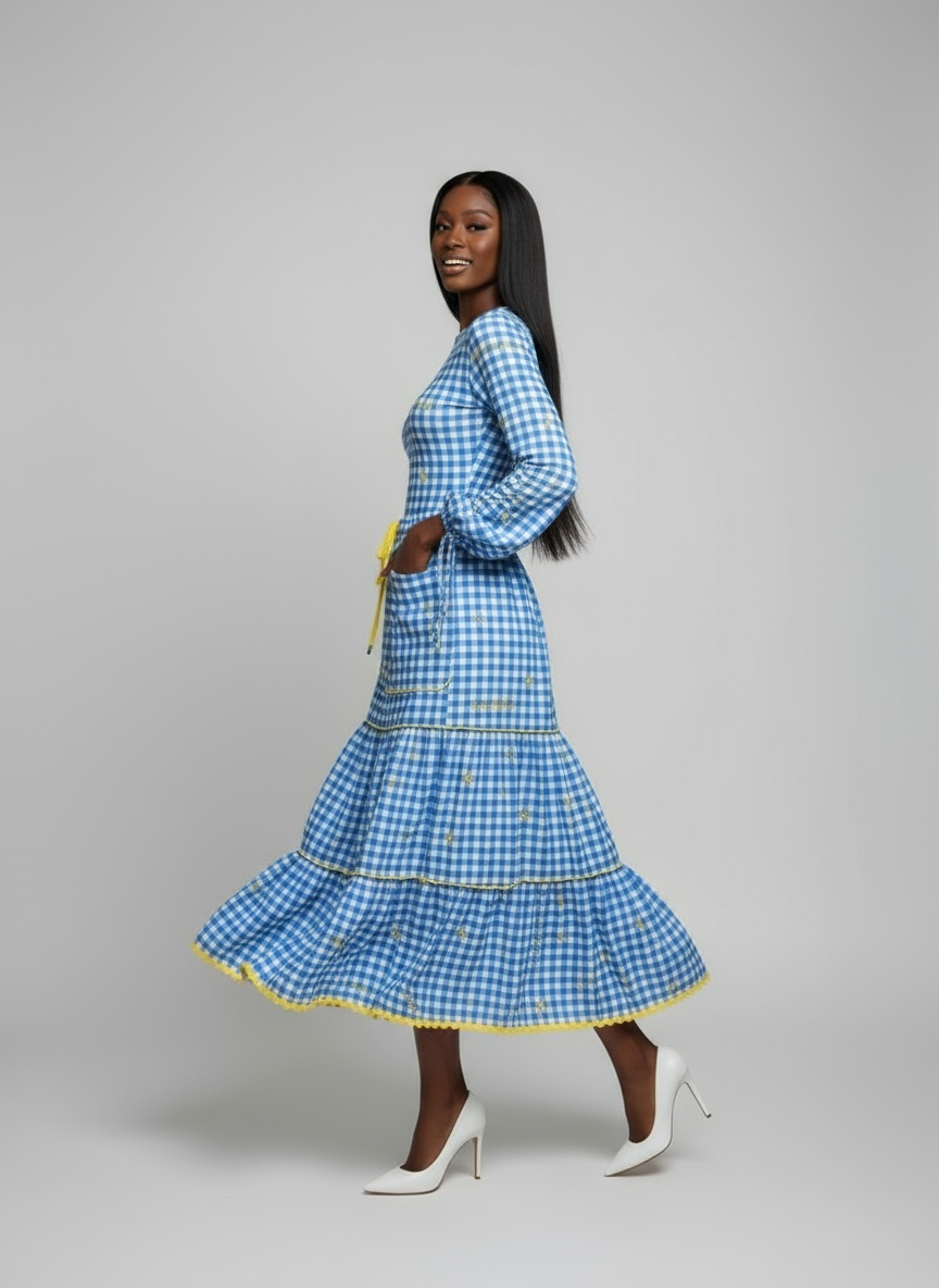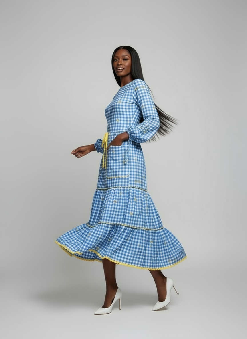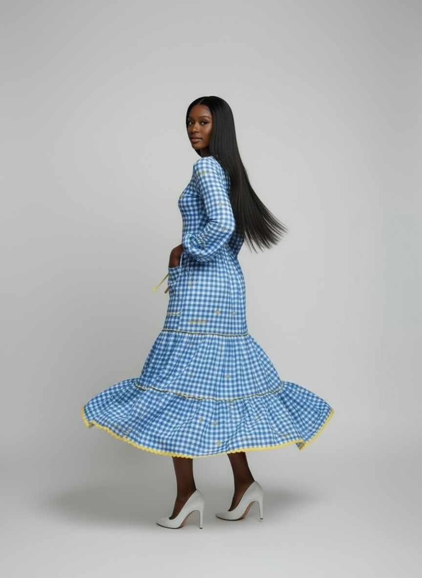 Two-piece coordinated set with long sleeve mesh top and cotton midi skirt