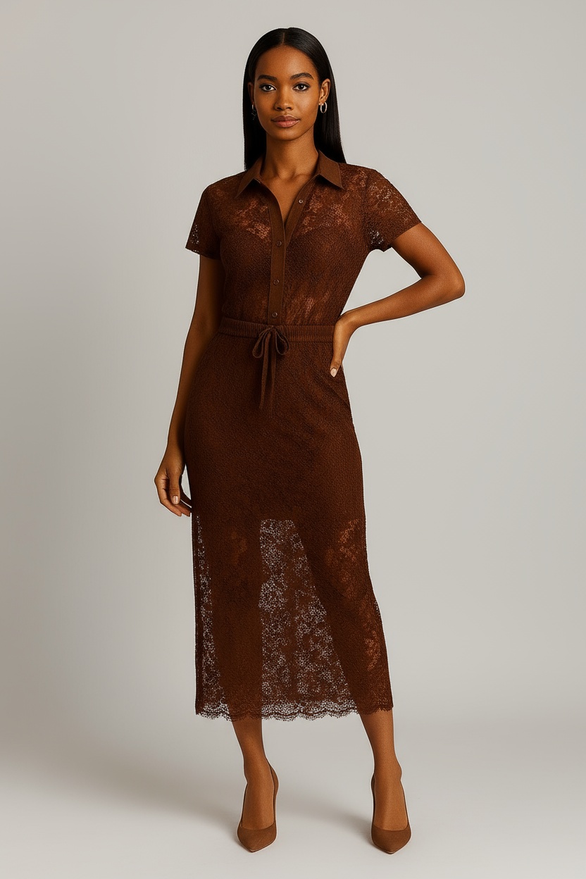 * Sheer lace midi two piece set with subtle floral texture