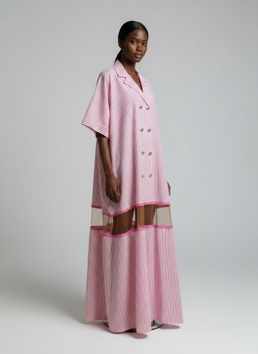 Elegant boubou silhouette with tailored shirt collar